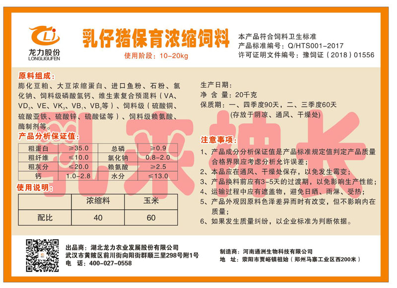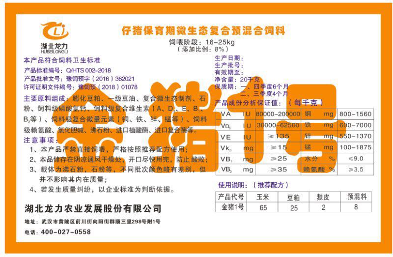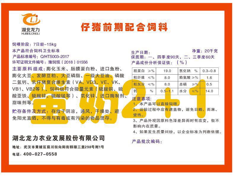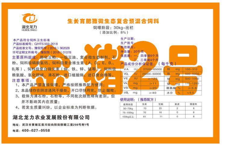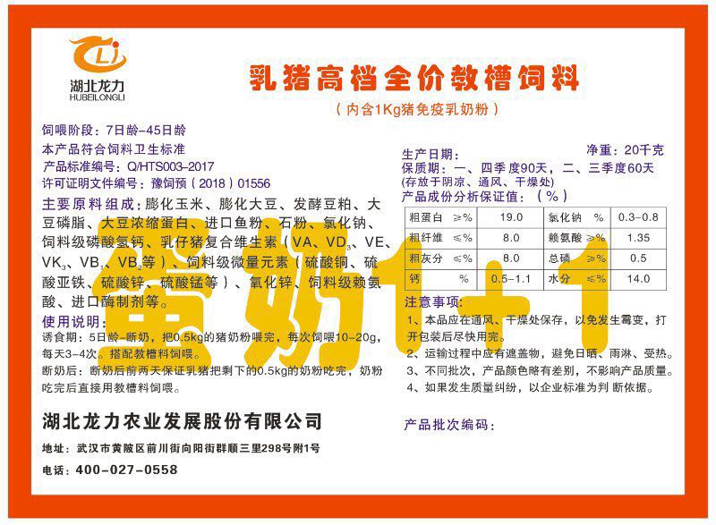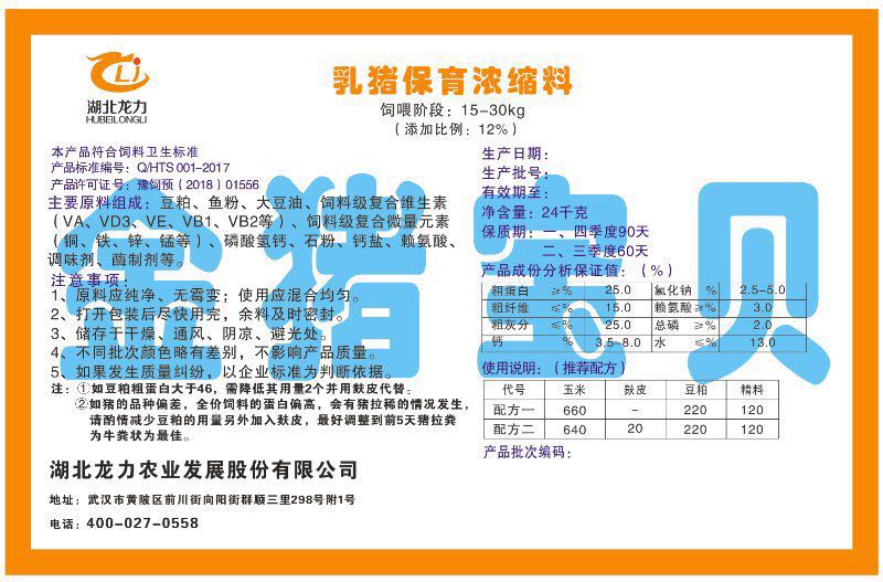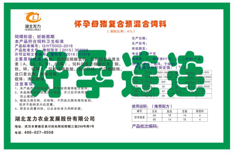 湖北龍力農(nóng)業(yè)發(fā)展股份有限公司坐落于武漢市黃陂區(qū)前川街向陽街群順三里298號附1號。公司成立于2014年6月,公司自成立以來把“創(chuàng)全球最大養(yǎng)豬綜合服務(wù)”為企業(yè)愿景。致力于打造教保料品牌”作為公司發(fā)展的明確目標(biāo)。公司一直致力于豬營養(yǎng)的研究和開發(fā),積極與國內(nèi)外高校和科研機構(gòu)合作,推廣養(yǎng)豬技術(shù)、動物營養(yǎng)新概念,向世界農(nóng)牧企業(yè)學(xué)習(xí)與合作。公司采用國內(nèi)先進(jìn)的生產(chǎn)工藝,選擇高精度電子配料秤,高均勻度、無殘留混合機等先進(jìn)設(shè)備....